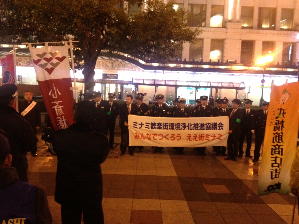さる12月6日、ミナミの繁華街で実施された防犯パトロールに、宣成社も参加してきました!