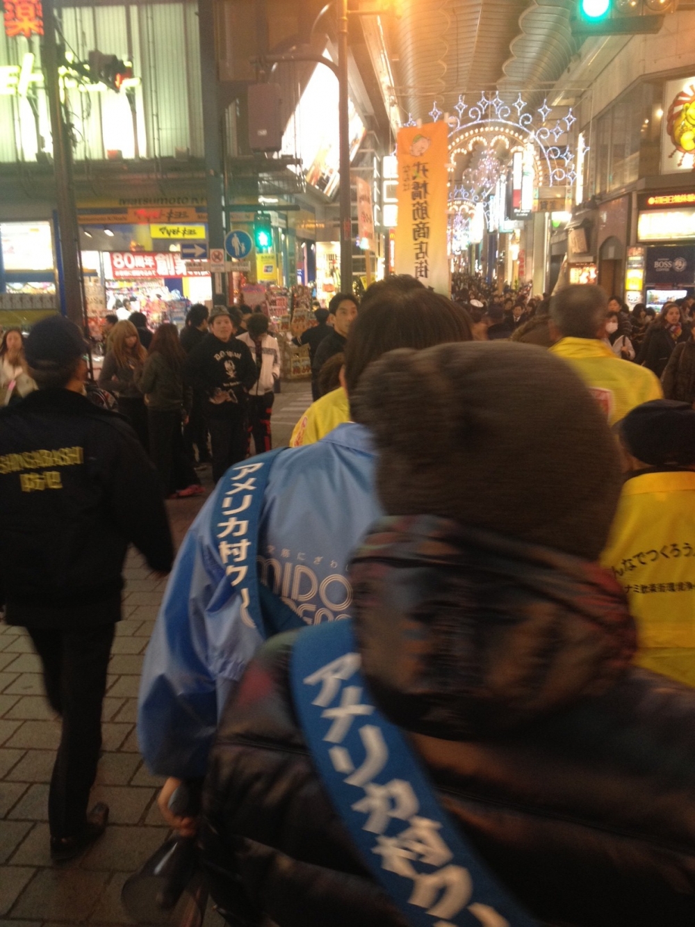 なんばマルイの前を出発し、東心斎橋商店街を北上、そして最後はアメリカ村の三角公園で解散という流れなのですが、